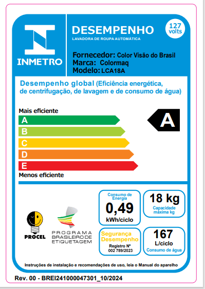 A Máquina de Lavar Colormaq 18kg é perfeita para quem busca alto desempenho na lavagem de roupas sem abrir mão da economia. Com capacidade para até 18kg de roupa seca, ela é ideal para famílias grandes ou para quem precisa lavar grandes volumes com eficiência. Seu modo Turbo Lavagem garante máxima agitação e centrifugação, removendo até as manchas mais difíceis com facilidade. Além disso, o sistema de lavagem por agitação proporciona uma limpeza profunda sem danificar os tecidos. Principais Recursos como, Turbo Lavagem: potência máxima para roupas muito sujas, Centrifugação eficiente: classificação A em desempenho, Dispenser inteligente: indica a quantidade ideal de sabão, alvejante e amaciante; Filtro de fiapos: roupas mais limpas e sem resíduos Retentor de objetos: evita que peças pequenas se percam Reutilização de água: mais economia e consciência ambiental Duplo enxágue: roupas livres de resíduos de sabão Desligamento automático: mais segurança e praticidade.